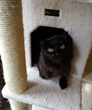 THEODORE In 2022 Oreo died at age 14. Then my significant other split . He took Minx, I took Sooty & Sarena. In 2023 Sooty died at age 15. I looked around and rescued a one-eyed senior black cat. He was from a bad hoarding situation and fortunately the rescue spent the money to save him. He fits in well with Sarena. Pictures from November 2023.