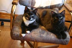 Sooty & Oreo, 7 years and Minx just 5 years in our new home in Kentucky. Sooty and Oreo were blood donors for 6 years in Illinois.